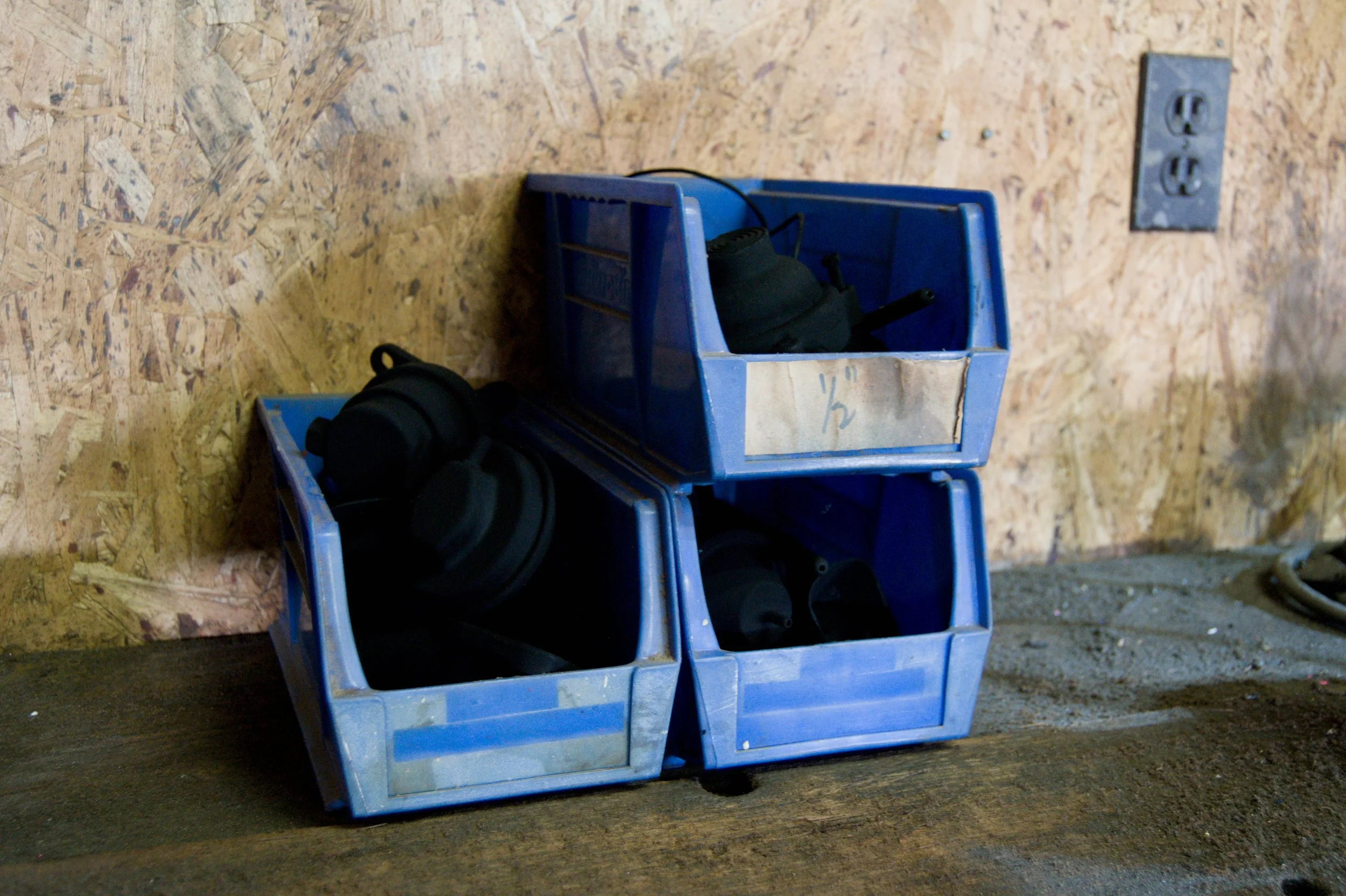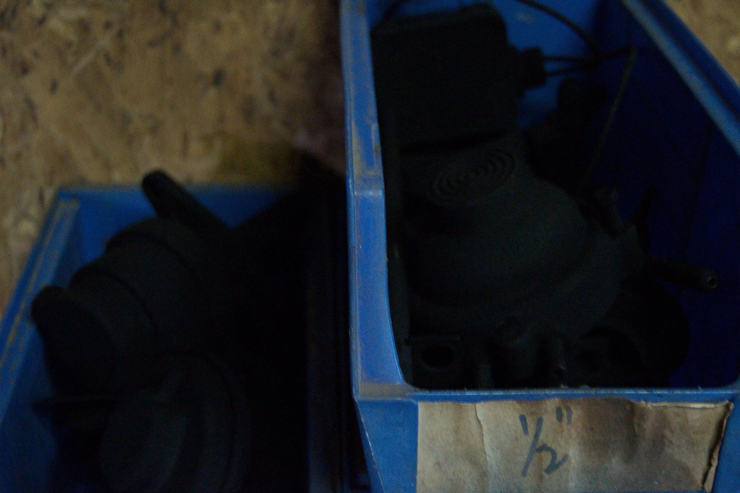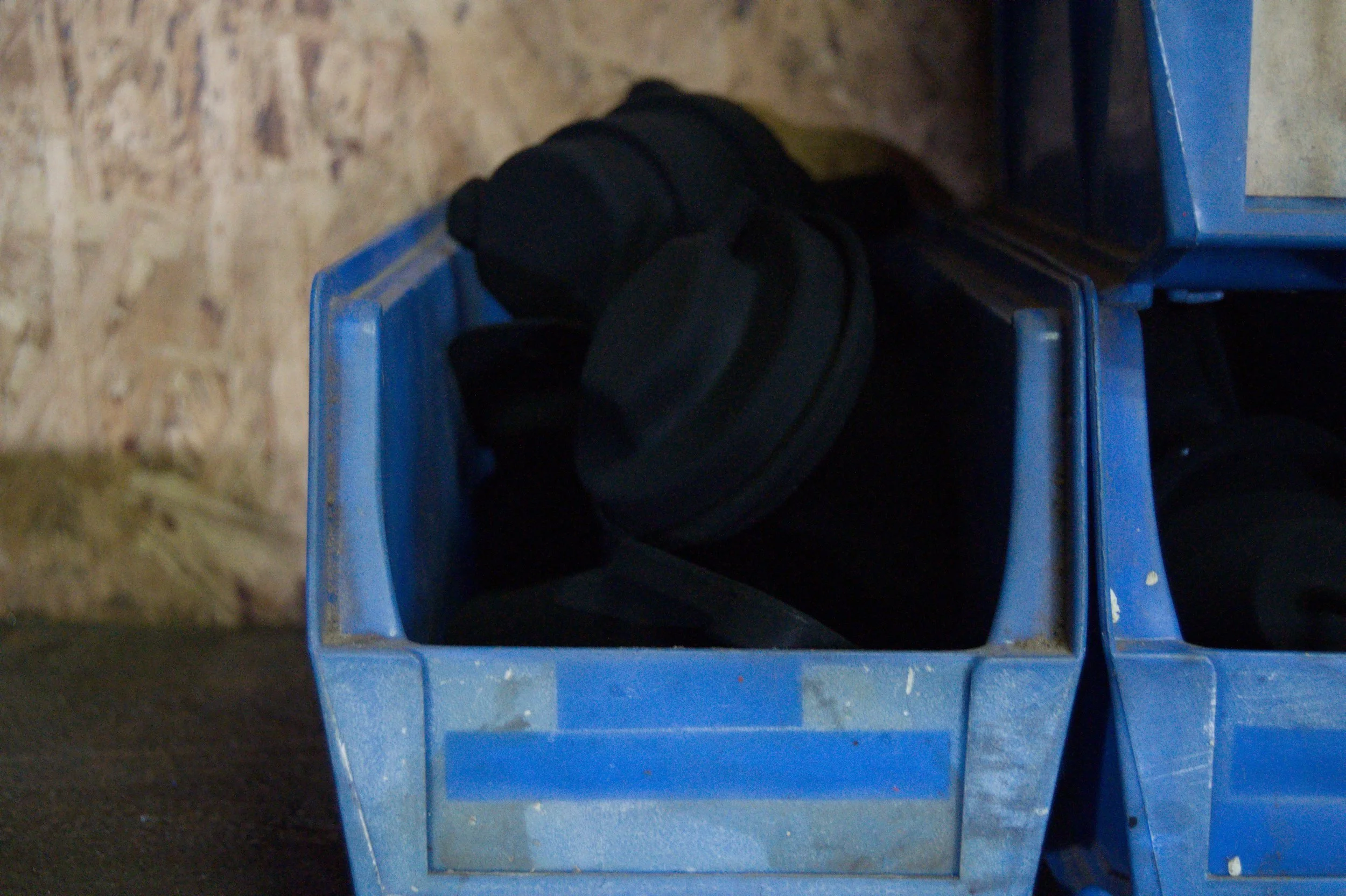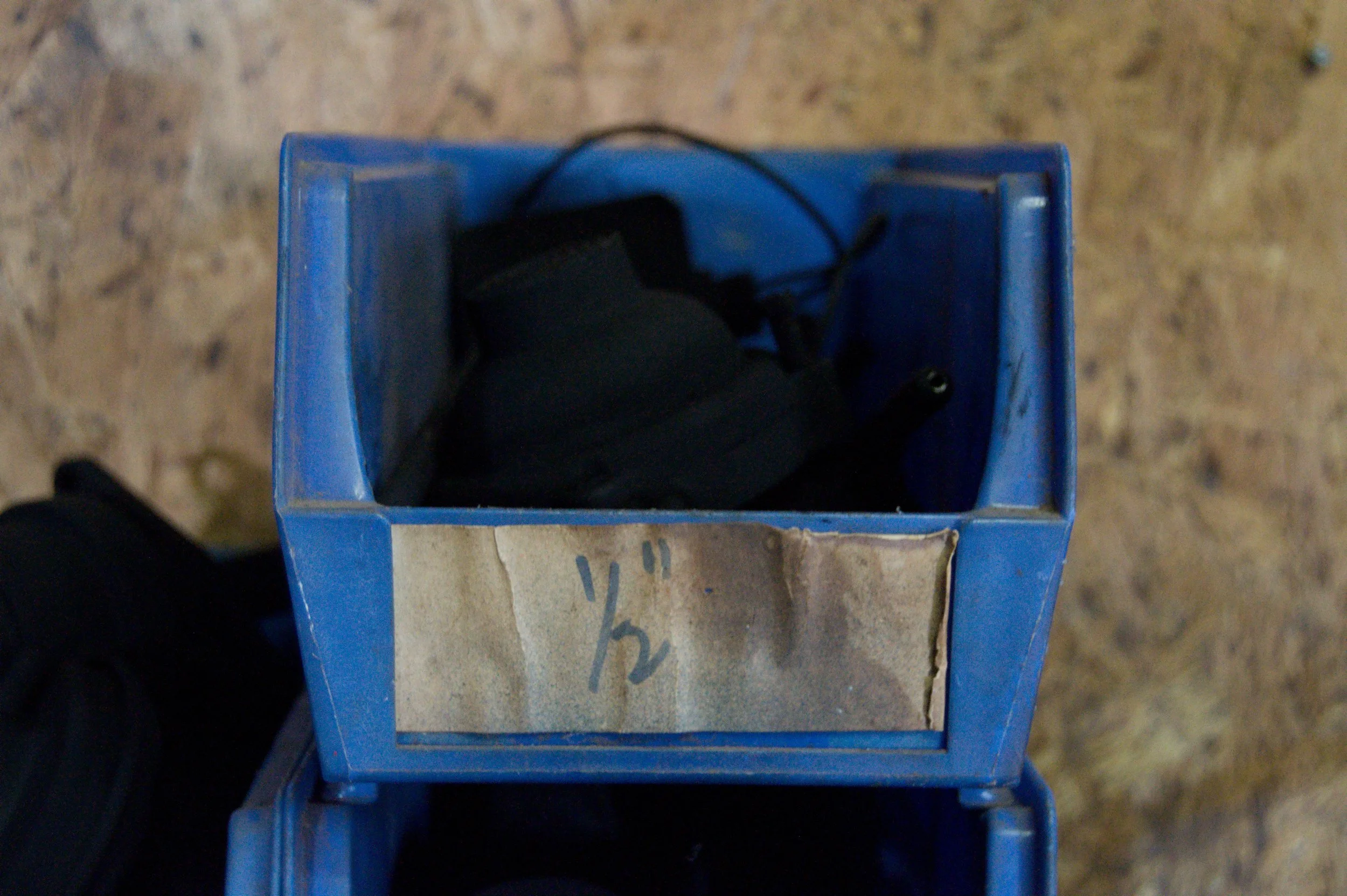 These bins and their contents were inherited by me when I moved into the house that was my grandparents’. They belonged to my grandfather. His garage and workshop are now my studio. I felt the work should be documented in it’s natural habitat.