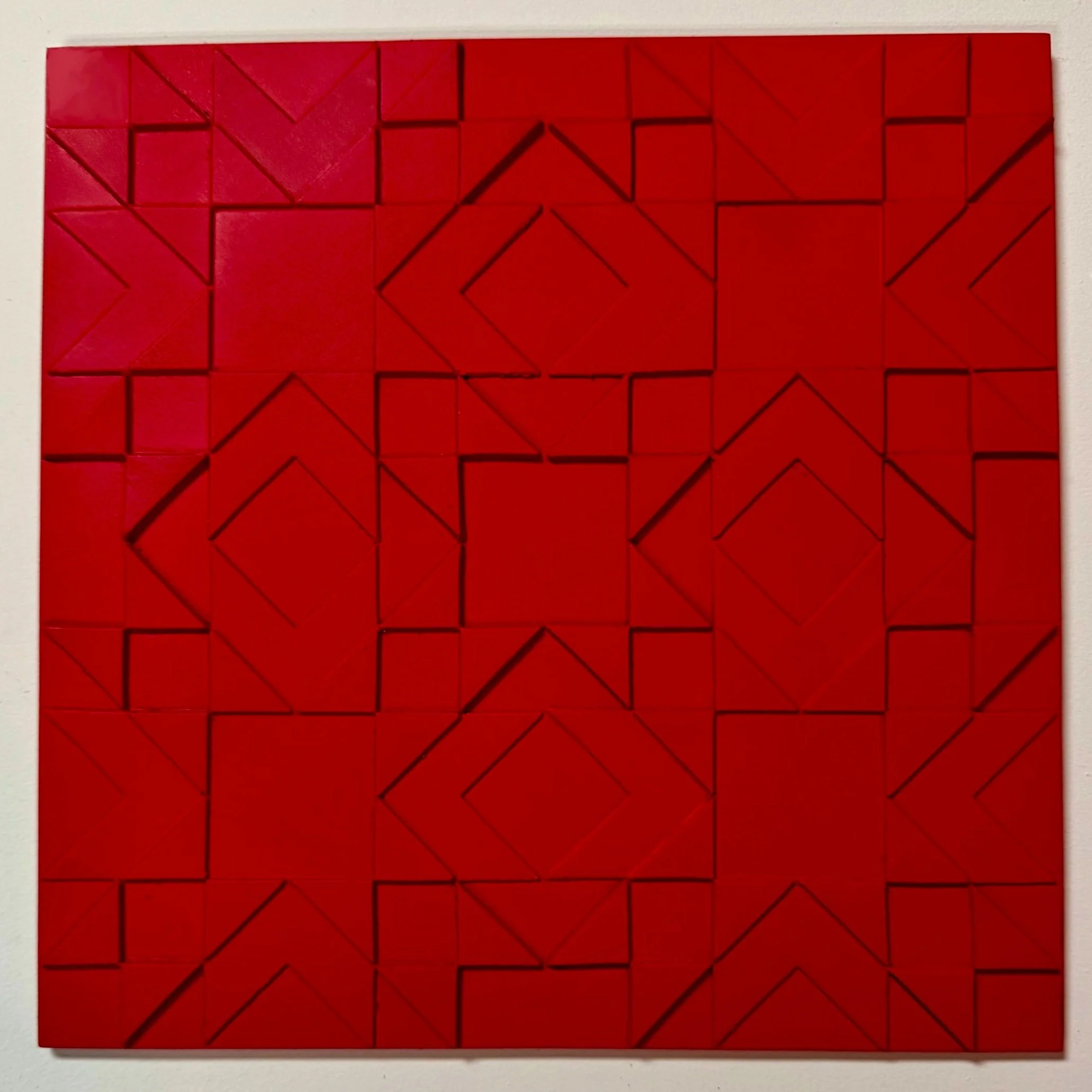 Ritual is an exploration of building identity through fragments of repeated action. The pattern is a double star quilt block rendered in 3 dimensions, cast in resin 24 times, assembled then painted. The tradition of quilting is a highly ritualistic act; a specific set of steps are followed and repeated to build an object of significance out of otherwise discarded fabric.